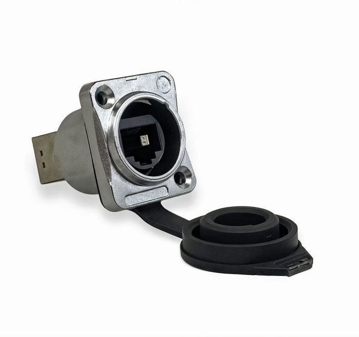 Панельная розетка RJ45 с разъемом- прямой выходной разъем- пыленепроницаемость и водонепроницаемость при подключении или с закрытой герметичной крышкой (IP65) - подходит для Cat5e, укомплектован резиновой заглушкой